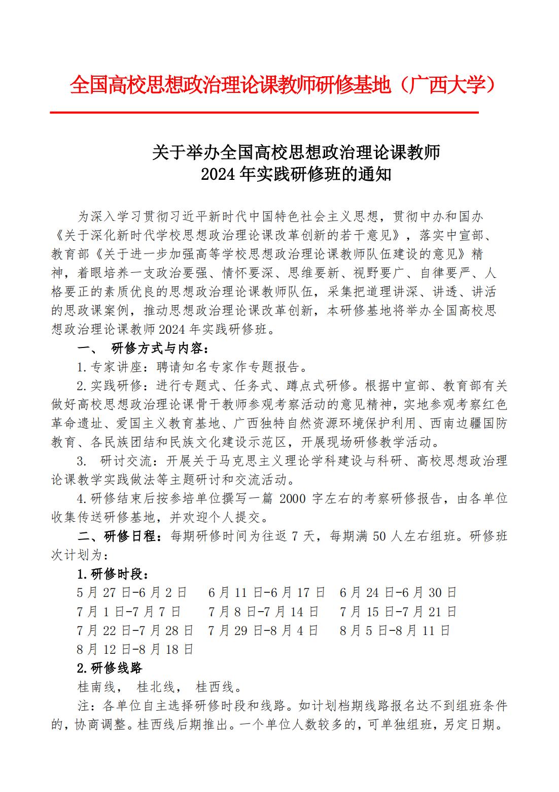 2024年全国高校思想政治理论课教师研修基地(广西大学)实践研修班通知.pdf