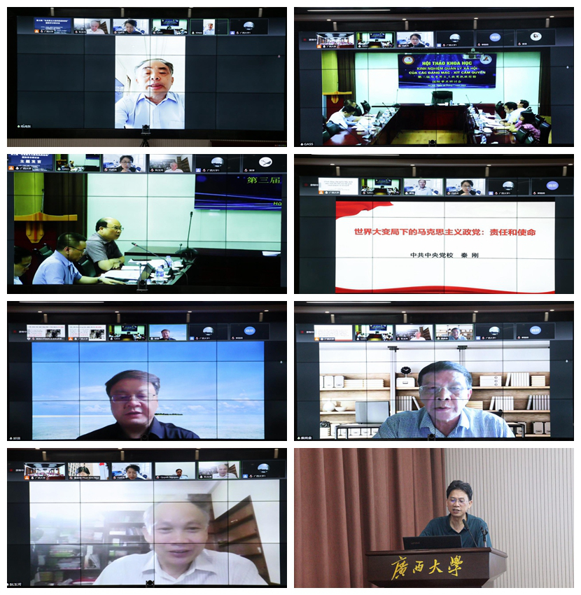 2022年7月20日,由广西大学、越南社会科学翰林院(研究生院)、越南国家哲学协会、老挝社会科学院、《当代世界社会主义问题》编辑部联合主办,广西大学马克思主义学院承办,南开大学马克思主义学院、《理论视野》杂志编辑部协办的“马克思主义政党执政经验”国际学术研讨会,在广西大学马克思主义学院101报告厅隆重举行。