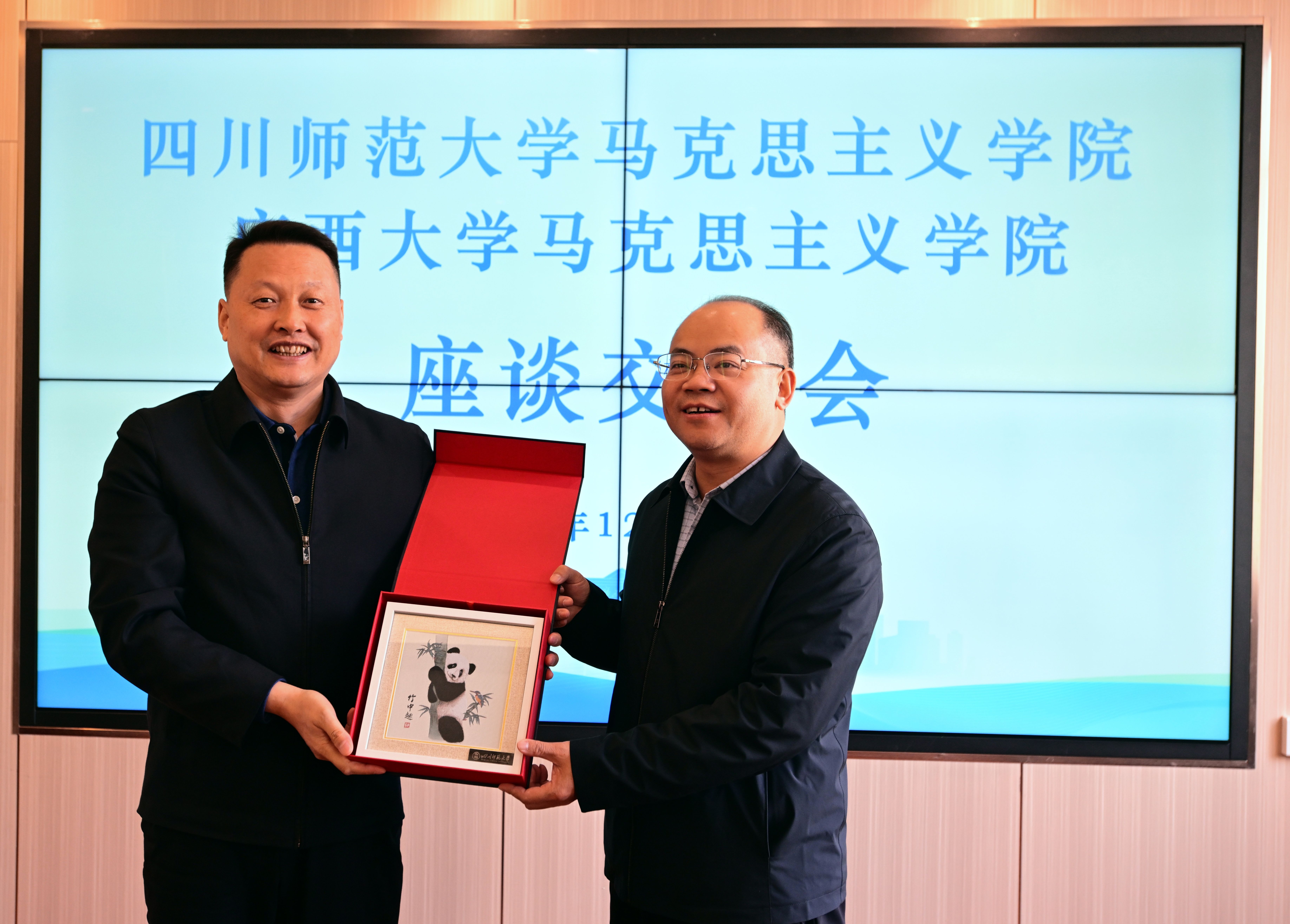 12月24日,四川师范大学马克思主义学院陈驰院长携教研室主任、思政课教师一行莅临我院进行调研交流, 我院徐秦法院长、梁建新副院长、陆秀红副院长、院长助理陈礼军教授及教研部主任等参加了座谈。