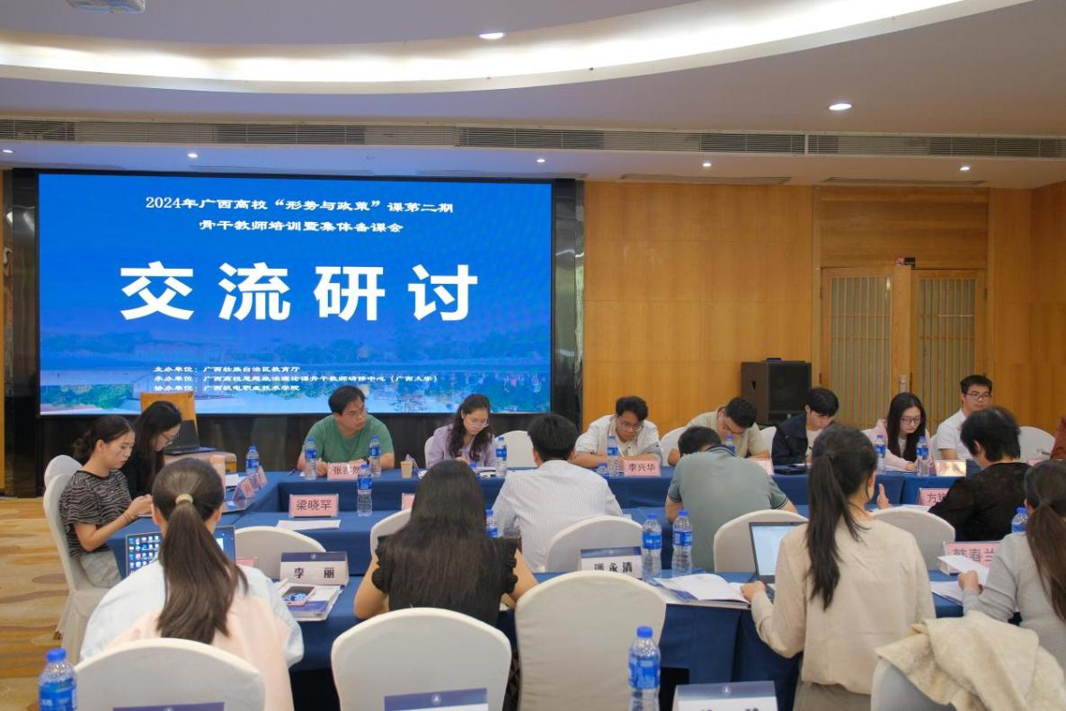 为全面贯彻党的教育方针,落实立德树人根本任务,进一步加强我区“形势与政策”理论课教师队伍建设,11月16日至18日,由自治区教育厅主办,广西高校思想政治理论课骨干教师研修基地(广西大学)承办,广西机电职业技术学院协办的2024年广西高校“形势与政策”课骨干教师第二期培训暨集体备课会在南宁成功举办。中共中央党校(国家行政学院)科学社会主义教研部主任秦刚、吉林大学马克思主义学院教授王贤卿、宁夏大学阿拉伯学院院长李绍先、国家社会科学基金学科评审组专家黎鹏、中国社会科学院大学教授潘金娥、中宣部《时事报告》杂志社湖南教学服务中心王成、广西大学马克思主义学院院长徐秦法出席开班仪式,仪式由梧州学院马克思主义学院党委副书记罗吉娟主持。