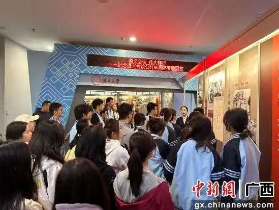 中新网广西新闻11月29日电(贾琦艳 莫凯洋)同看专题展览、同听理论宣讲、同上思政微课、同宣青春誓言……11月28日,来自广西大学马克思主义学院和南宁市第三中学的30余名大中学生以“大手拉小手”的形式,在“行进中的遵义会议纪念馆”广西大学巡展上,举行了一场别开生面的主题团日活动。