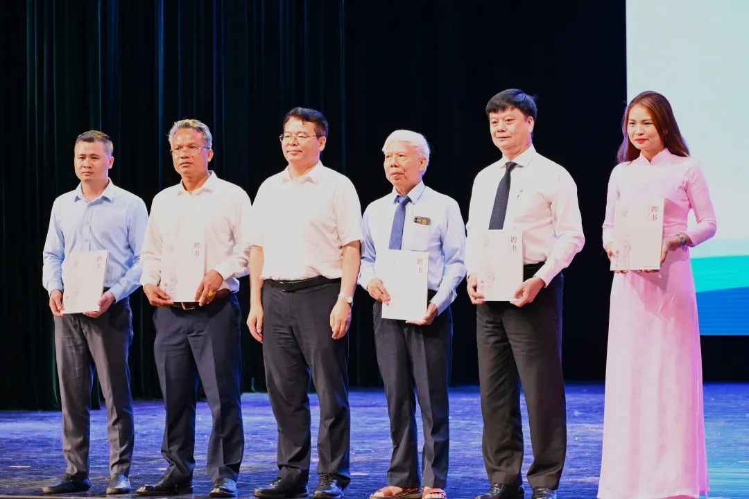 为进一步凝聚共识、加强合作,推动广西大学与越老两国高校合作交流再结硕果,李国忠分别向范文德、西维莱·乔布汤以及河内师范大学陈登生副教授,越南哲学协会办公室主任、河内师范大学陈氏河江博士,老挝国立大学社会科学学院科学社会主义专业负责人坎温·坦玛冯颁发了广西大学兼职教师聘书。此外,范文德还向徐秦法教授颁发了越南哲学协会名誉副会长聘书。