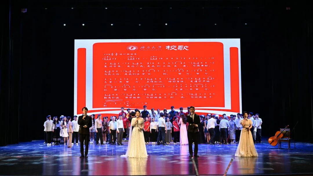 在第二篇章“命运与共向未来”中,马院舞队的啦啦操舞动出青春的节拍;由南宁三中学生代表、思政241班学生代表、越南语23级学生代表带来的《像你这样的朋友》唱响并肩成长、真挚动人的友谊;歌曲串烧《二十二》《稻香》旋律动人,再次将观众的热情带上一个高峰。