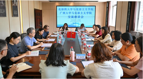 座谈会上,陆副院长对北部湾大学马克思主义学院一行的到来表示热烈欢迎,她简要介绍了学院在思政课建设尤其是思政课实践教学方面的改革举措和突出成效。随后,我院教师代表详细分享了基层教学组织建设、课程改革、教学和科研团队建设等方面的经验;双方就如何将前沿创新理论融入课堂教学、创新教学方法、推进大中小学思政课一体化建设等方面展开热烈讨论。