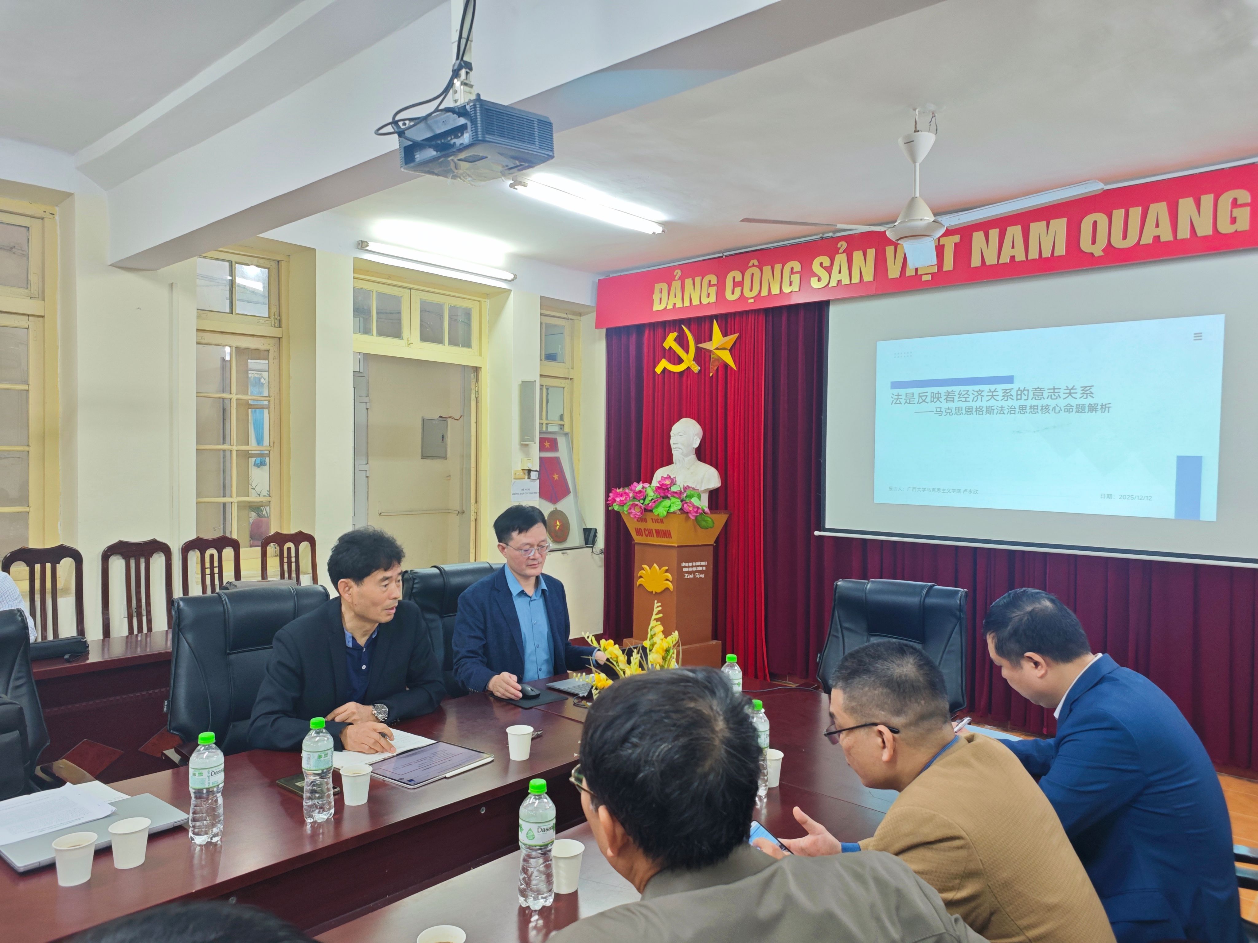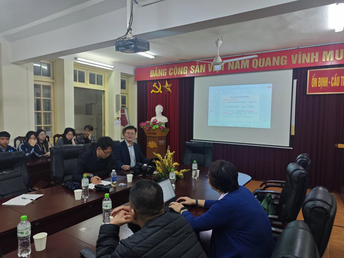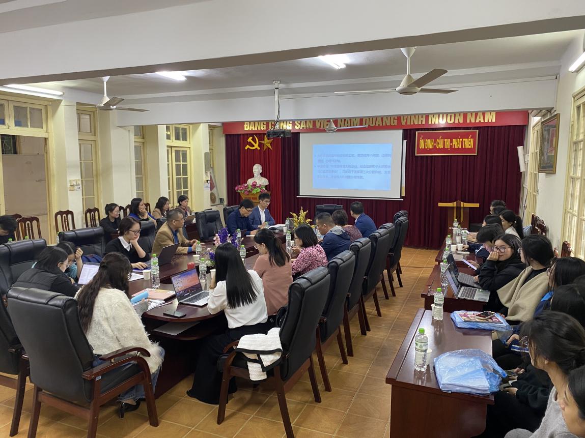 12月12日至13日,学术访问团与河内师范大学政治理论与公民教育系共同举办了三场学术交流活动。该系系主任范越胜教授以及相关部门负责人、师生代表共同出席座谈会。