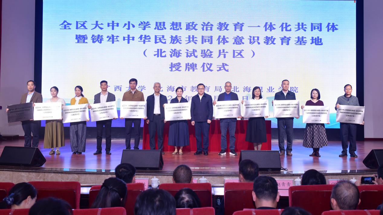 12月12日,全区大中小学思想政治教育一体化共同体暨铸牢中华民族共同体意识教育联盟(北海试验片区)建设工作启动仪式在北海职业学院举行,标志着北海试验片区相关建设工作正式开启。