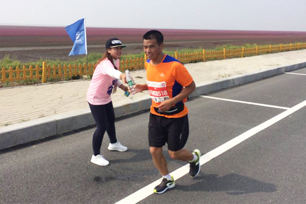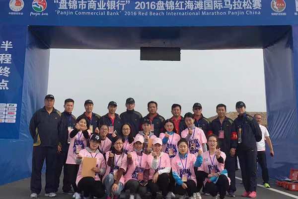 9月11日上午8点,2016年盘锦红海滩国际马拉松赛正式开赛。盘锦职业技术学院组织1950名志愿者和2000余名师生观众,圆满完成了组委会分配的各项工作任务,彰显了学院师生乐观向上的精神风貌,成为此次马拉松比赛中的又一道靓丽的风景。清晨还未破晓,学院志愿者师生观众就已经集合并接受安检,出发至比赛地。志愿者们全部奔赴到各服务岗位。按照前期多次的岗位培训,各司其责,忙碌于检录、计时、电子芯片保障、央视服务、嘉宾和特邀选手及裁判员服务等各项工作。马拉松赛事的高强度性要求志愿者们有灵敏的反应能力和扎实的应急技能,各项志愿服务有条不紊的进行着。师生观众也有序的进入场地后,拉起欢迎的大条幅,打起各个分院系的旗帜,为每一位参与马拉松比赛的运动员摇旗呐喊、助威鼓劲。志愿者和师生观众的辛苦付出得到了“红马”组委会一致的好评与认可。