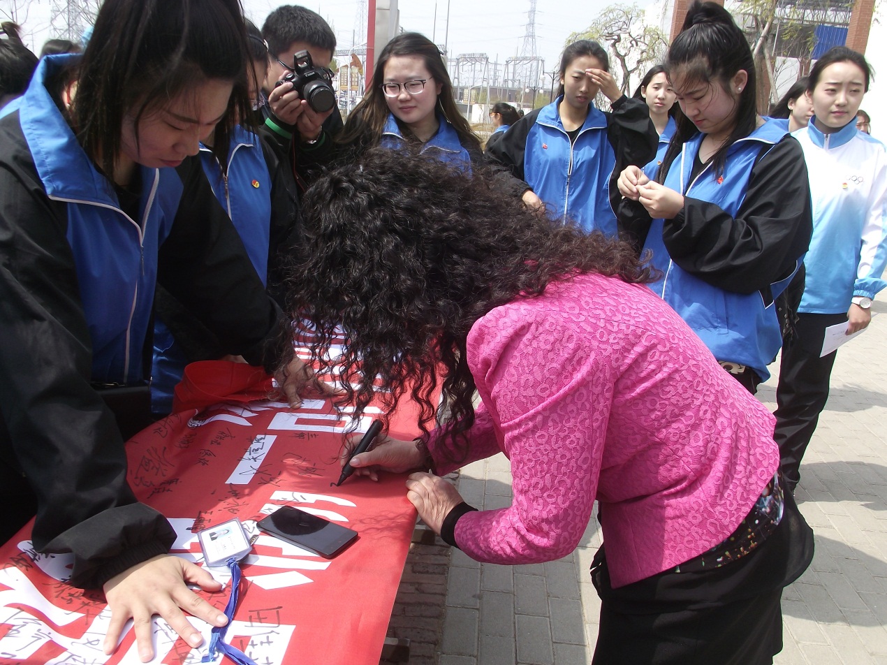 2016年4月21日中午,在学院一食堂和二食堂门前本次主题团活动如期顺利举行。活动中我们邀请到了学院党委副书记李兵、团委副书记蔡志远及师范教育分院全体学工教师。活动开始,由师范教育分院学前教育专业新生代表王安琪发出本次活动倡议,随后同学们开始签字并佩戴团徽,到场的领导及老师们也积极参与到活动中,在宣传横幅上签名留念、佩戴团徽。随着越来越多师生的加入,全院共青团员中掀起了一个团员活动新热潮,以佩戴团徽这一简单方式,增强了共青团员的责任感、使命感,为我院团总支建设增添了浓墨重彩的一笔。