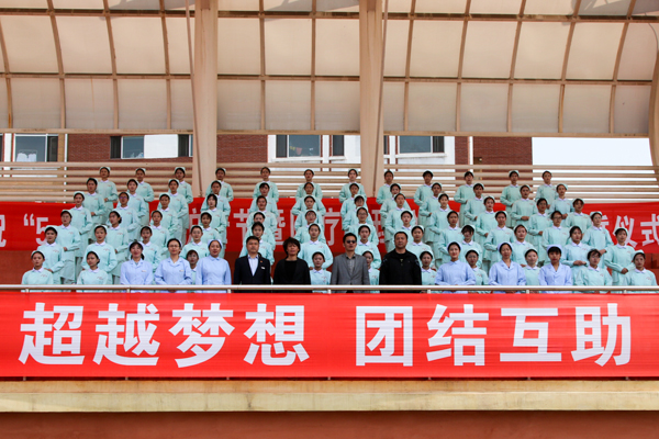 13时30分,在学院校史长廊正式启动了职业教育活动周系列活动。启动仪式中,各分院领导、教师代表、学生代表共300余人参加了该项活动。活动中医疗护理分院师生热情高涨,一袭袭飘然的白衣像是一颗颗纯洁的心灵,一顶顶别致的燕帽预示着一项项守护生命的重任。医疗护理分院于5月10日12时30分,在学院体育场举办了“5·12国际护士节暨护士授帽仪式”及宣誓活动。学院副院长勾殿红,医疗护理分院院长李冬、副院长姚文山、副院长郭强,医疗护理分院党支部书记王艳华、副书记陈平海、办公室主任苏再兴、分院全体教师及1000余名学生参加了此次活动。授帽仪式和宣誓活动更加坚定了同学们对护理专业的热爱和追求,也必将会出现更多的白衣天使把这种精神传承下去。
