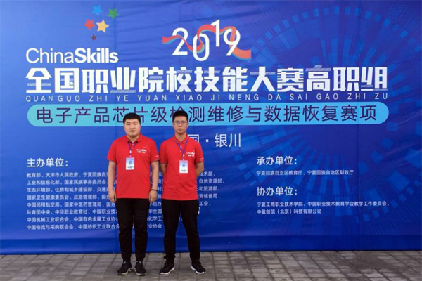 2019年全国职业院校技能大赛电子产品芯片级检测维修与数据恢复赛项于5月11日在宁夏银川开赛,来自全国28个省、直辖市的90个高职院校180名参赛选手参加了比赛。经过一天的激烈角逐,由学院机电工程系王辉主任、孙伟副主任带队,李树波、李龙两位老师指导,张才琦、井慧瑞2名同学组成的代表队荣获该赛项团体三等奖,为辽宁省和学院争得了荣誉,继物联网技术应用赛项后再添佳绩。