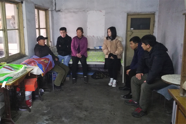 1月12日7:30,学生工作处王俊杰老师、建筑工程分院书记张长江、副书记孙义明以及辅导员魏冉一行四人从盘锦出发,下午2时抵达位于锦州的工程造价1801班的孙澳同学家中,两间已显破旧的瓦房便是一家三口居住之地。两位家长将家访分队热情地迎入屋内。正值三九寒冬,室内外温度却相差无几。