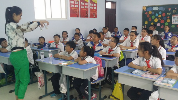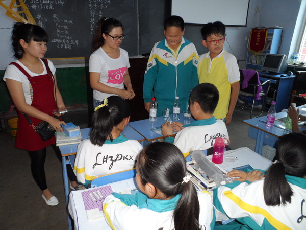 2015年6月12日中午,魏冉老师带领环保宣讲社团的全体环教人员前往盘锦市辽化小学和双台子区实验小学,48名环教人员分成24组分别前往事先分配好的班级开始授课。整个环保趣味课堂总共分为两大板块,第一板块是趣味知识教学,第二板块是趣味实验。在第一板块中,宣讲队的老师们分别从“水的特性”、“水与生命”、“水与生活”三个方面带领小朋友们从不同的角度认识水。第二板块中,在宣讲老师的帮助下,小朋友们积极参与到趣味实验中来,跟老师们积极互动,感受实验中发生的神奇的颜色变化。最后,宣讲环教人员为小学生们颁发了由中华环保基金会和青环志愿者服务中心认证的“青少年环境知识科普课堂—生命之水”培训结业证书。