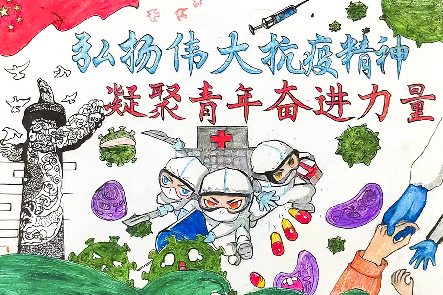 为期一周的“云”端授课过程中,各位教师利用腾讯会议、学习通直播两大网络平台,在充分发挥学生主体性的基础上,紧扣抗疫主题,利用传唱抗疫歌曲、绘制抗疫手抄报、拍摄抗疫短片等多种形式推动思政课实践教学提质增效。通过沉浸式的思政课实践教学,使学生重温抗疫过程中的感人场景,体会在抗击新冠疫情过程中彰显的制度优势,感悟伟大抗疫精神的内涵和力量,有利于鼓励学生在担当中历练,在尽责中成长,帮助学生立大志、明大德、成大才、担大任,助力学生扣好人生的第一粒扣子。