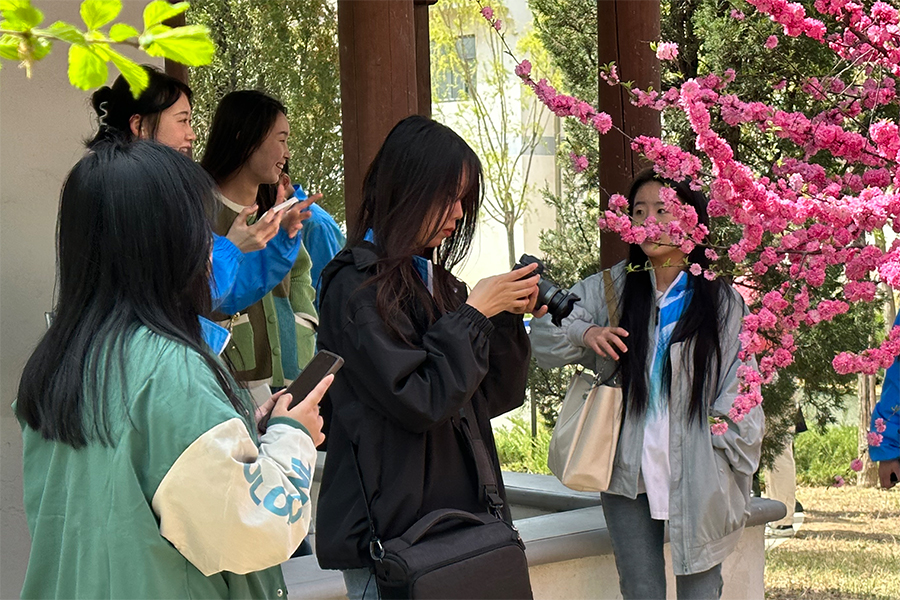 4月21日下午,由国家AAA级旅游景区、国家文化产业示范基地江南风情园景区大力支持的“江南风情园杯”财经学院第一届短视频营销设计大赛开幕,网络营销与直播电商专业教研室主任孙玉苹、辅导员张忠及教师马祥山、王君婷共同带领参赛学生到盘锦江南风情园景区开展短视频素材拍摄实践活动,学生在园区工作人员的指引下对江南风情园的建筑风格与设计理念有了深刻了解。