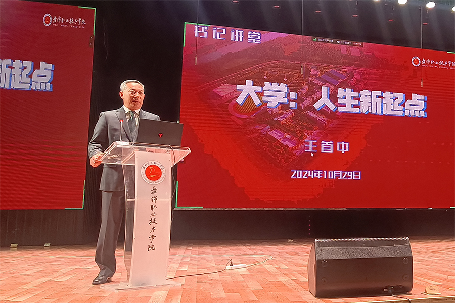 “书记讲堂”已经成为盘锦职业技术学院新生入学必上的传统课。2024年秋季学期的“书记讲堂”如期举办。学校党委书记王首中以“大学:人生新起点”为题,先后为全校8个院系的3800余名2024级新生开展了多场讲座。