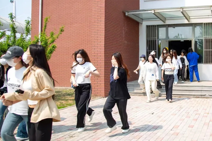 2025年5月27日,盘锦职业技术学院联合盘锦市红十字会、盘锦市消防救援支队,成功举办“2025年消防安全应急救护疏散演练”。本次演练以“人人会逃生、个个会应急”为主题,通过实战化场景模拟与技能教学,全面提升师生应急逃生与自救互救能力。