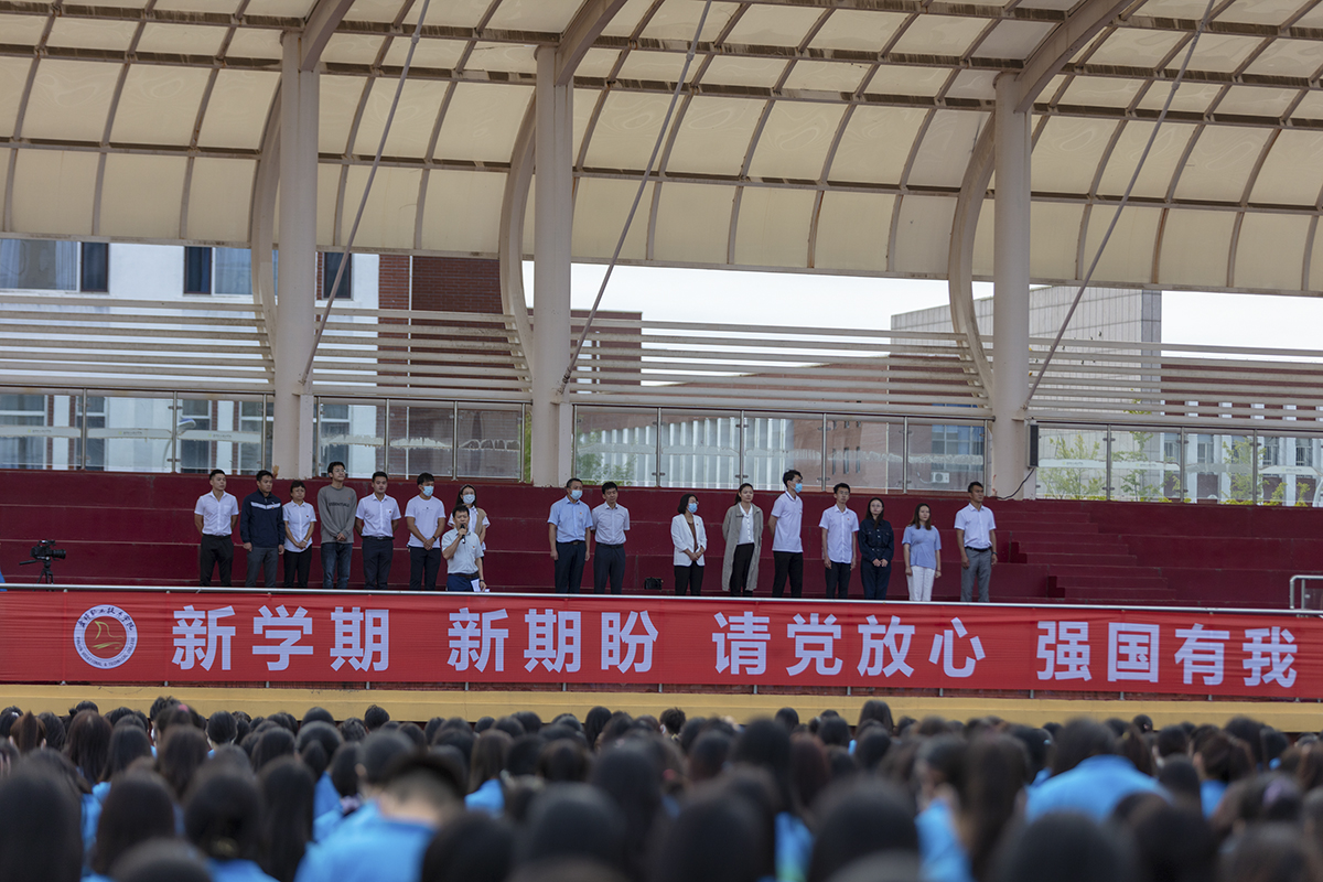 本次升旗仪式是新学期的“开学第一课”,更是一堂生动的思政课,一堂意义深远的爱国主义教育课。今年是中国共产党成立100周年,希望所有师生用实际行动在建设中国特色社会主义现代化强国的道路上奏响“请党放心,强国有我”的时代强音。