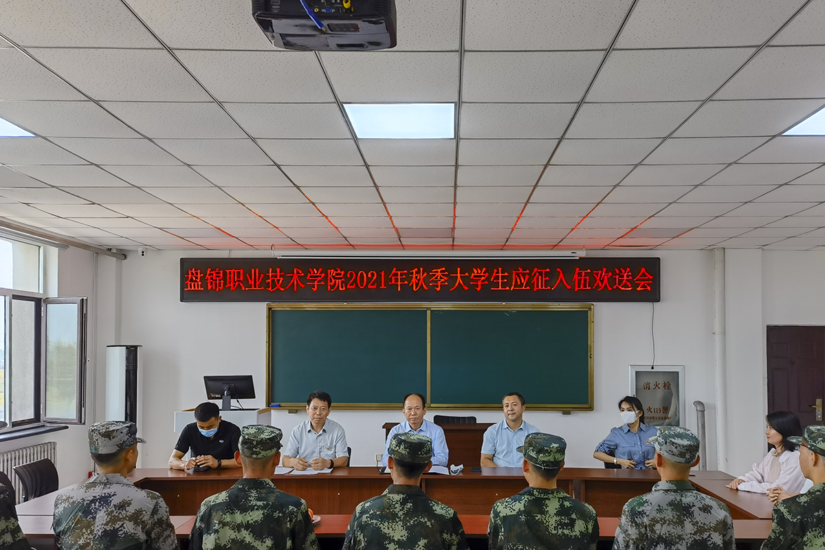 有为青年从军建功,热血青春立志报国。9月16日下午,学校武装工作部在大洼区人民武装部新兵集训地举行2021年秋季大学生应征入伍欢送会。学校党委副书记、武装部部长李兵,学生工作处处长陈平海,武装工作部王俊杰老师和相关学院的副书记及辅导员老师参加欢送会。会议由王俊杰老师主持。