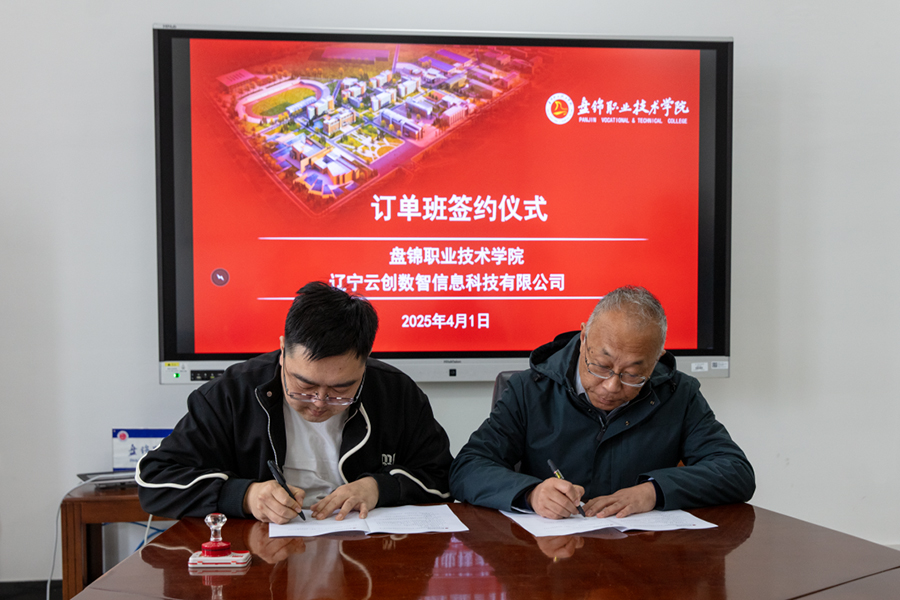 2025年4月1日上午,盘锦职业技术学院与辽宁云创数智信息科技有限公司举行了订单班培养合作协议签约仪式,订单培养主要面向信息学院的计算机应用技术专业、工业互联网技术专业2026届毕业学生,订单培养人数40人,培养人工智能AI训练师岗位需求人才。盘锦职业技术学院副校长李辉和辽宁云创数智信息科技有限公司总经理姚刚分别代表双方签约。