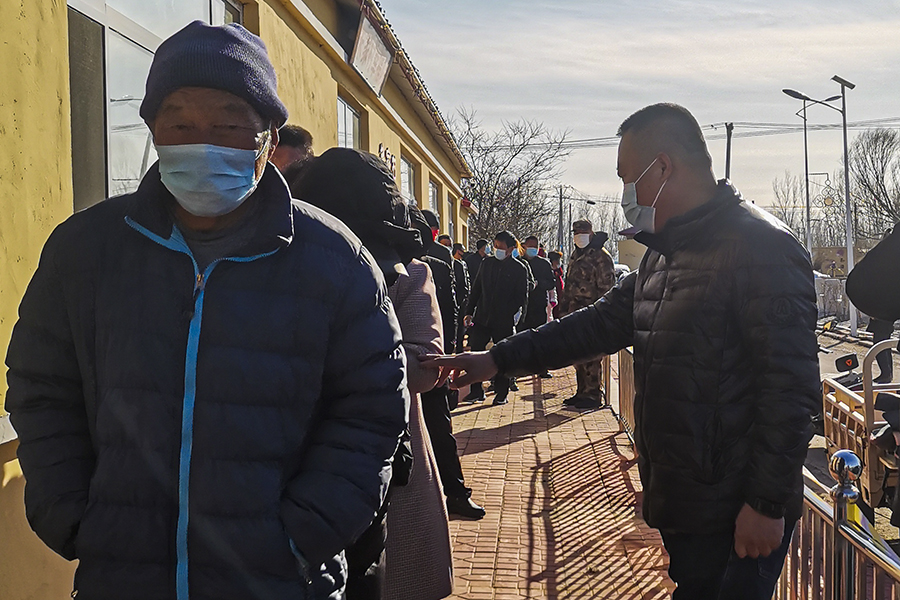 核酸检测现场,工作队成员不停穿梭在排队等待核酸检测人群中,耐心解答村民疑问,“我没带身份证怎么办?健康码在哪找?孩子没有健康码怎么办?”在空旷的广场上,阳光直射屏幕根本看不清手机,有时变换好几个角度都不一定能扫上,只能靠工作队成员手动输入信息才能认证识别。从早上八点忙到下午四点,大家依旧用铿锵有力的嗓音提醒村民提前出示辽事通健康码、佩戴好口罩、保持一米间隔,确保全员核酸检测扩面筛查安全有序进行。
