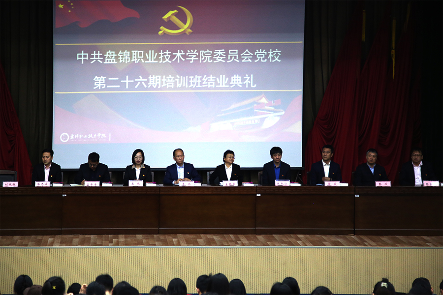 4月21日下午,中共盘锦职业技术学院委员会党校第二十六期培训班结业典礼在图书馆报告厅举行,学校党委副书记李兵同志、八学院党支部书记及相关负责同志出席,结业典礼由党委工作部副部长刘微微同志主持。