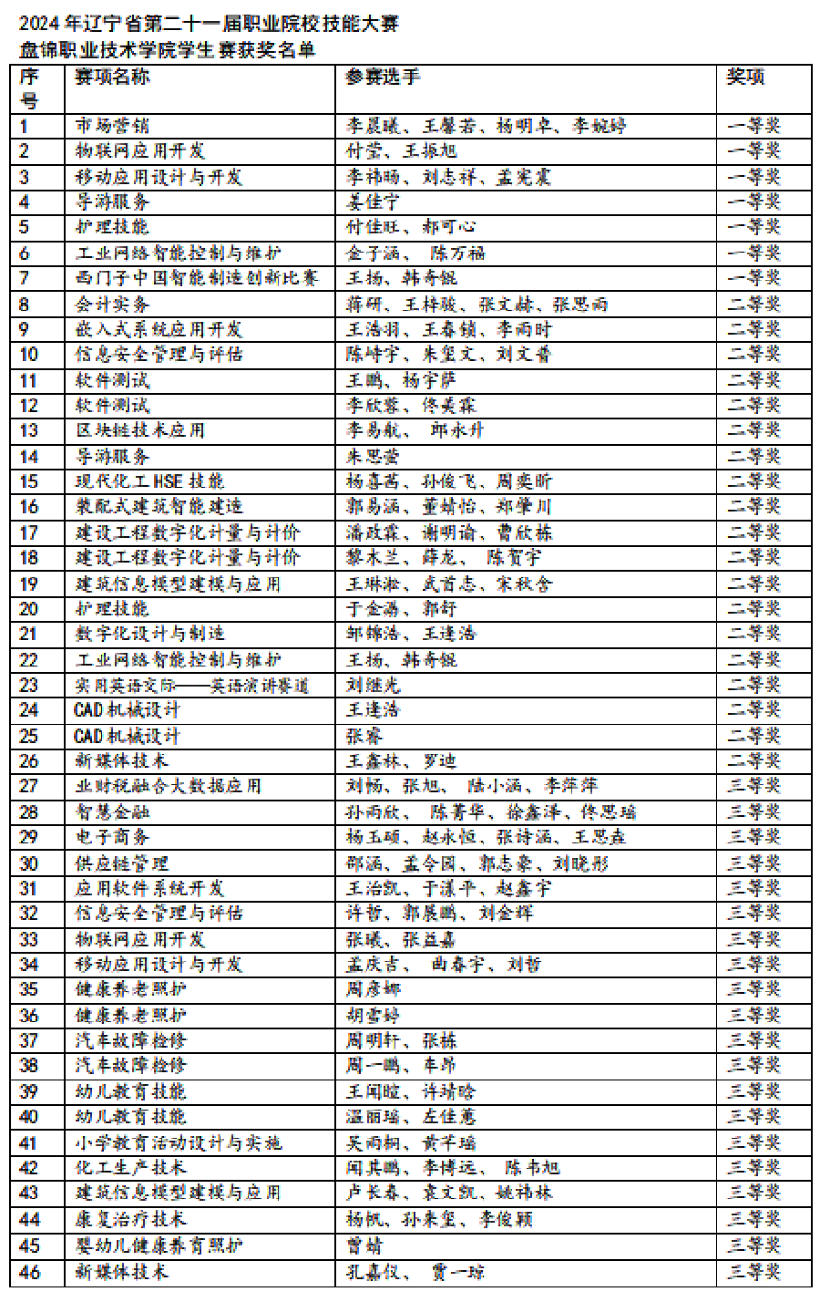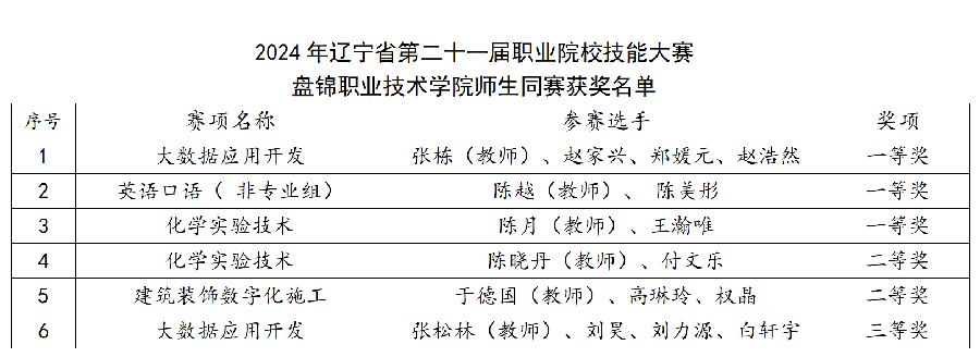 近日,辽宁省教育厅公布辽宁省第二十一届职业院校技能大赛获奖名单,我校在此次大赛中获得65个奖项。