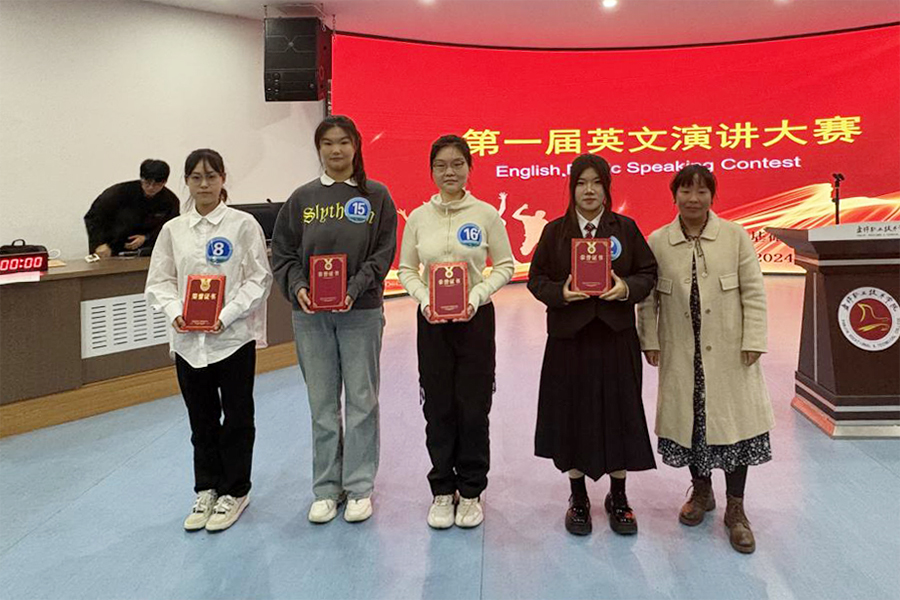 本次英语演讲大赛于10月10日正式启动,共计126名学生报名参赛。大赛分为视频初选和现场决赛两个阶段,持续时间近一个月。初赛阶段,共征集到86份视频作品,经过专家评审,最终有16名参赛者脱颖而出,进入决赛。11月8日决赛阶段,决赛选手依次登台,表现卓越,自信且充满活力,充分展示了我校学生在英语演讲方面的个人魅力和能力。经过激烈的竞争,机电工程学院的高政同学荣获特等奖,医疗护理学院的王宇鑫同学和化学工程学院的李智伯同学荣获一等奖,师范教育学院的刘淑淋等4名同学荣获二等奖,建筑工程学院的李依静等9名同学荣获三等奖。与会领导、评委以及指导教师为获奖选手颁发奖项。