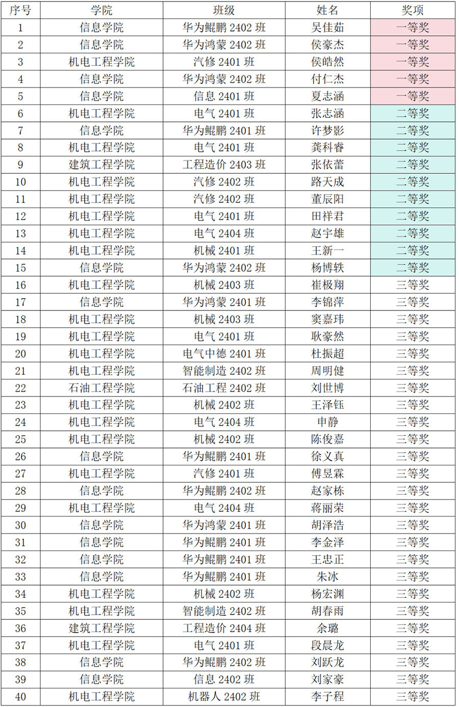 初选后,共有119名学生晋级决赛。经过激烈的角逐,信息学院吴佳茹等5名同学荣获一等奖,机电工程学院张志涵等10名同学荣获二等奖,石油工程学院刘世博等25名同学荣获三等奖。