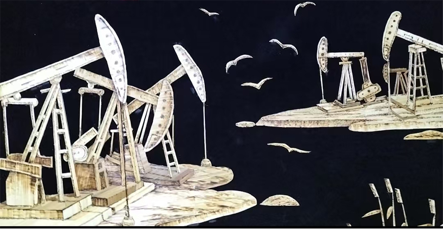芦苇画 一等奖《油海晨曲》 作者:赵晨羽 指导教师:李玉柱、高莹