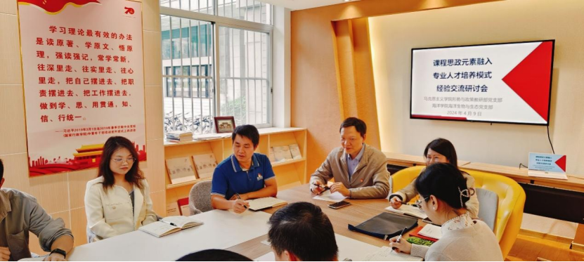 4月9日下午,我院形势与政策教研部党支部和海洋学院海洋生物与生态党支部开展支部结对共建活动,举办了“课程思政元素融入专业人才培养模式经验交流研讨会”。马克思主义学院黄晓红副院长出席会议,形势与政策教研部党支部书记熊浩、海洋生物与生态党支部书记梁甲元共同担任会议主持,两个支部的20余名党员教师参加了此次交流研讨。