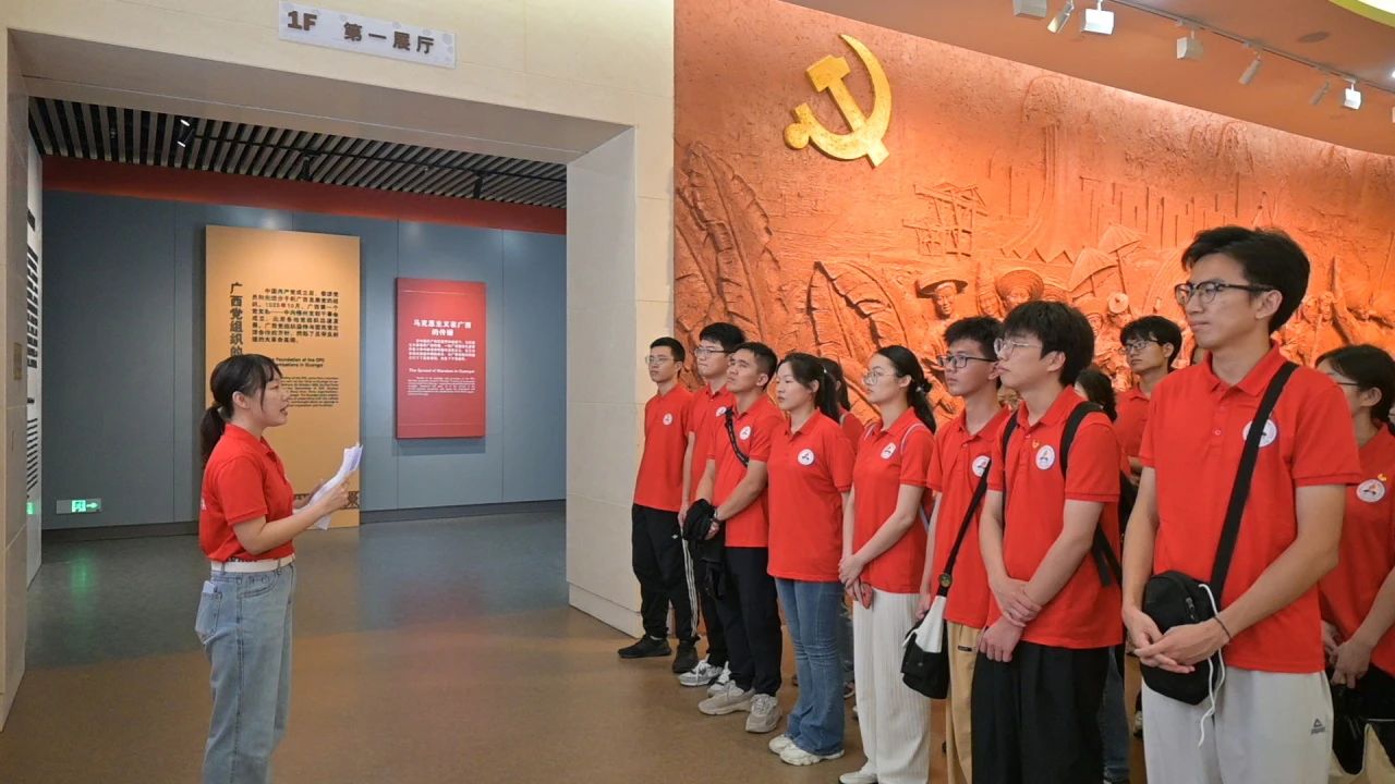 晴日暖风,早荷婷立。为充分利用好本土红色资源,引导同学们赓续红色血脉,涵养红色基因的担当使命,助力建设壮美广西,5月7日下午,马克思主义学院第五期青马班全体学员走进广西展览馆开展“感悟精神伟力,勇担时代使命”红色研学活动。