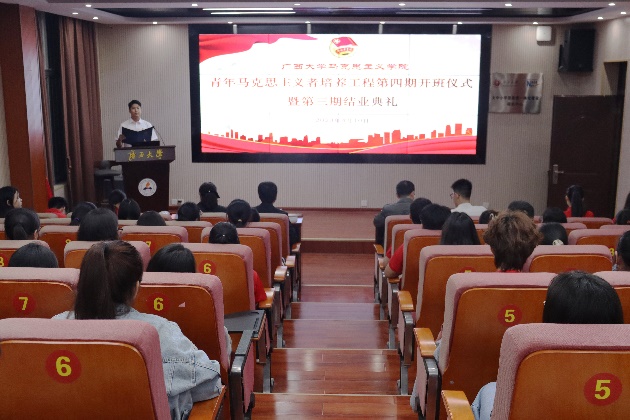 4月10日晚上,我院青年马克思主义者培养工程第四期开班仪式暨第三期结业典礼在学院101报告厅举行。学院党委书记周瑞超老师、党委副书记李海波老师、团委书记虞文茜老师、团委副书记莫凯洋老师出席仪式,学院第三期、第四期青马班全体学员参加活动,仪式由第四期青马班学员赵彦雪主持。