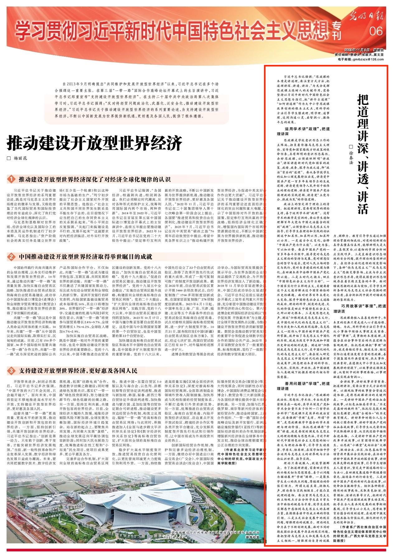 我院教师徐秦法在《光明日报》(2023年11月2日第六版)上发表理论文章《把道理讲深、讲透、讲活》。