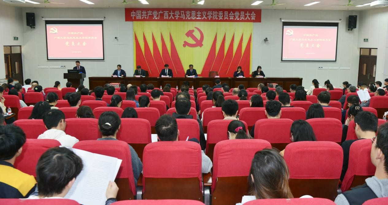 大会号召,全院师生更加紧密地团结在以习近平同志为核心的党中央周围,认真贯彻落实学校党委的各项决策部署,以时不我待的紧迫感、舍我其谁的责任感,创新创造、奋勇争先、全面一流,奋力跑出高质量发展的加速度,为建好新时代广西大学马克思主义学院、推进牢牢扎根八桂大地的中国特色社会主义“双一流”大学而团结奋斗!