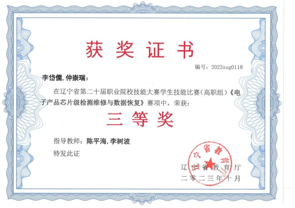 电子产品芯片级检测维修与数据恢复 省赛 三等奖