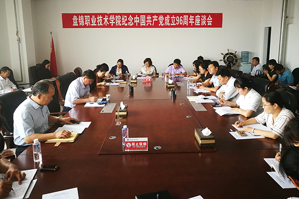 6月30日,盘锦职业技术学院纪念中国共产党成立九十六周年座谈会在博远楼410会议室举行。学院党委书记王正东、党委副书记李兵、全院党支部书记、先进党员代表参加本次座谈会。王正东...